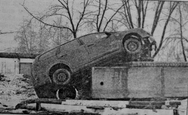 Этот “Форд Фокус" мы сфотографировали 21 февраля на Московской трассе неподалеку от Борзны. Накануне ночью автомобиль не вписался в крутой поворот объезда строительной площадки моста и вылетел прямо на бетонные конструкции. Водитель и пассажир, к счастью, не пострадали. Спастись помогла небольшая насыпь, которая подняла машину и не дала ей врезаться в конструкцию «в лоб».