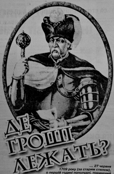Після поразки Мазепи росіяни доклали величезних зусиль, аби відшукати майно колишнього гетьмана. Чимала частина мазе-пинських скарбів зберігалася у Києво-Печерській лаврі та у Білій Церкві. їх було конфісковано. Забрали до царської казни і численні маєтки Мазепи. Серед козацької верхівки та населення активно розшукували таких, хто «міг хоча б щось знати», уряд обіцяв віддати кожному, хто вкаже на слід статків гетьмана, половину від знайденої суми або вартості майна. Отоді й виникли чутки про скарби Мазепи, заховані ним під час втечі з України...