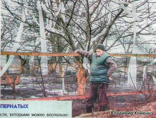 Были мы в командировке в Петровке Бобровицкого района. В одном из дворов заметили дерево, с ветвей которого свисали огромные ленты из пленки. Стали гадать, что за диковина. Водитель пошутил, что дерево украсили вместо елки к Новому году. Чтобы унять любопытство, я подозвала хозяина. Владимир Хоменко на мои вопросы и просьбы сфотографировать его украшенное дерево рассмеялся: