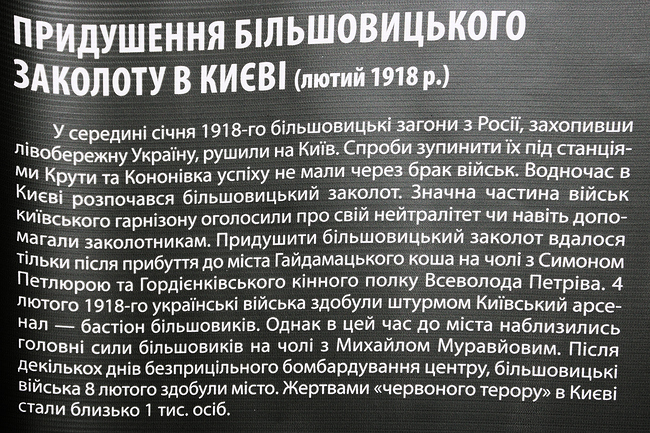 – Армія – це гарант того, що держава буде самостійна, вільна і що люди в ній будуть жити так як хочуть вони самі, а не нав’язано їм зовні, і тому, відкриття цієї виставки дуже гарно пов’язується з Днем Соборності. Ми знаємо, що тоді визвольні українські дії на жаль закінчилися поразкою, але це не ознака того, що армія була слабка. Це показує, що мабуть тодішні керівники, спочатку мало уваги приділяли армії, але те, що чотири роки тривала українська революція, те що українці чотири роки зі зброєю в руках боронили свою свободу і незалежність, показує що армія, яка протистояла тоді потужним збройним військовим формаціям, все ж таки була створена і залишила по собі чимало героїчних сторінок, – каже Сергій Горобець, представник Українського інституту національної пам’яті у Чернігівській області.