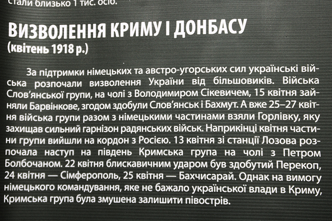 На виставці зібрана детальна інформація буквально про все: про полководців, про військові з’єднання, військові операції, карти, унікальні фотографії та інше.