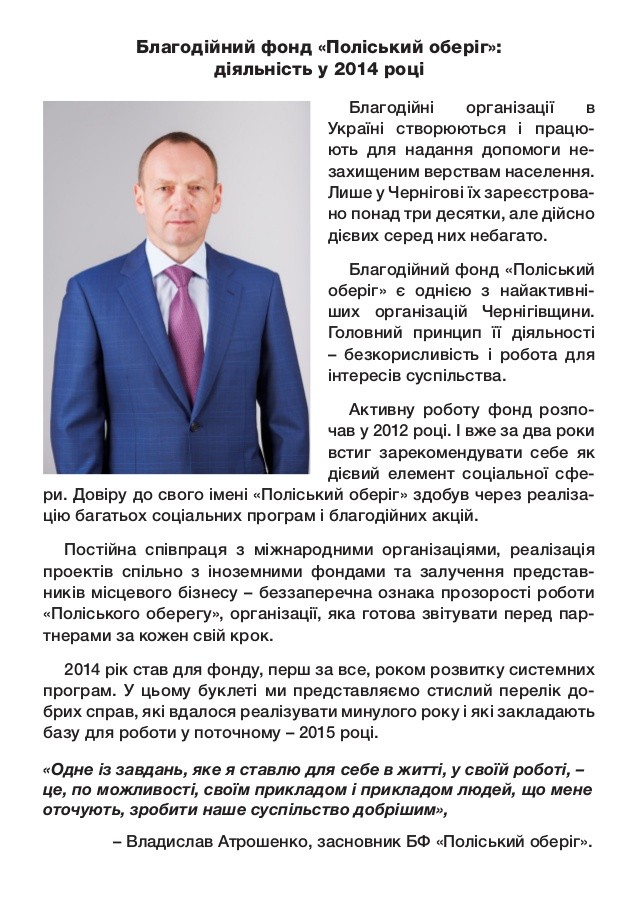 Ткаченко та Масленніков за інформацією сайту Монітор - були кординаторами благодійного фонду «Поліський оберіг», який має пряме відношення до діючого мера Владислава Атрошенка.