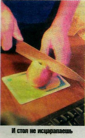 «Таким тесаком можно поцарапать стол. Но не через диплом» (диплом использует как доску для нарезки яблока).