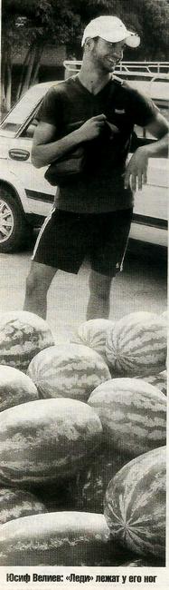 Зеленый хвостик ничего не обозначает, — рассказывает Юсиф. — Это просто говорит о том, что арбуз недавно сорван. Вот посмотрите (показывает спелый арбуз с темно-красной сердцевиной), хвостик зеленый, а ягода — то, что нужно!