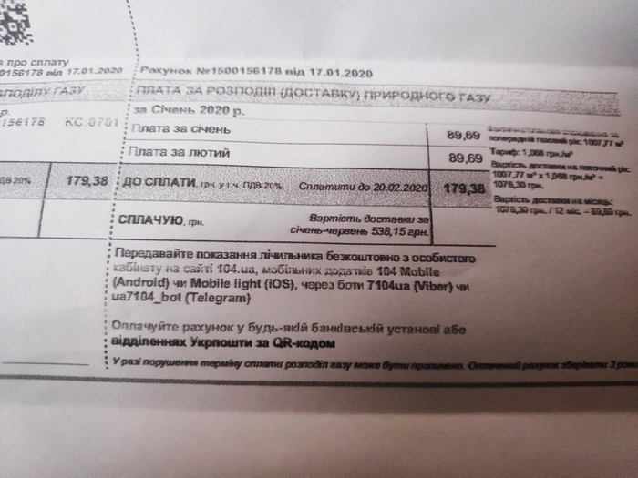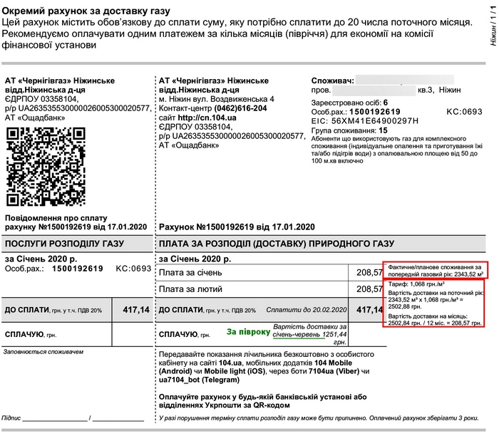 Зверніть увагу, що сплачувати за цим січневим рахунком можна до 20 лютого 2020 року, а не протягом 5 робочих днів після отримання рахунку, як у випадку з рахунком за грудень. Аби зекономити на комісії за сплату рахунку Марина Кирієнко радить сплачувати квитанцію одразу за 2 місяці, 6 місяців або за рік – для зручності споживача всі ці суми виведено у квитанції. Особливо це актуально для тих споживачів, у яких з газових приладів вдома лише плита, тож комісія за сплату 2-3 гривень розподілу може бути більше самої суми розподілу.