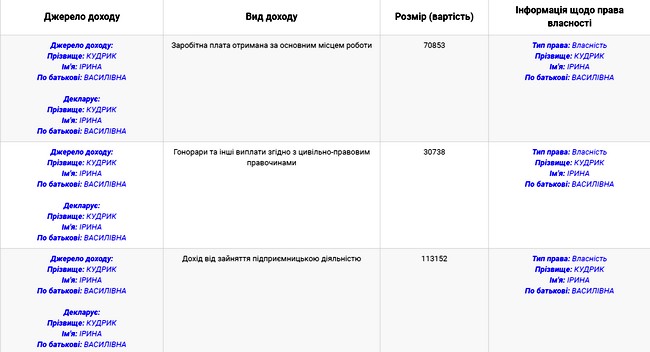 Оскільки більшість так званих реформаторів фінансуються з-за кордону, то побачити прозоро рівень їх доходів – неможливо. По Ірині Кудрик у вільному доступі є лишень декларація за 2016 рік – майже 71 тисяча гривень зарплати за основним місцем роботи. Ще 113 тисяч гривень доходу від підприємницької діяльності. Цікава деталь – «грантожерка», яка отримує зарплату з Європейського Союзу, є відповідальною за одну з найголовніших реформ країни в області і разом із цим займається підприємництвом. В каталогу власників та директорів компаній Ірина Кудрик числиться засновником обслуговуючого кооперативу «Садівницьке товариство «Чернігів-Сад», що розташований у Трисвятській Слободі Чернігівського району. Звісно, все законно, але наскільки децентралізація сумісна з підприємницькою діяльністю – спірне питання.