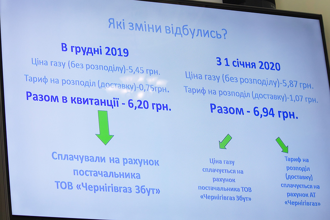 Аналогічна ситуація зі споживанням природного газу бюджетними закладами міста. Через впровадження заходів з енергозбереження та теплу зиму, споживання газу бюджетними закладами м. Чернігова за період з жовтня 2019 року по січень 2020 року у порівнянні з жовтнем 2018 року – січнем 2019 року скоротилось на 18 % (з 106,3 тис. м куб до 87,4 тис. м куб). Проте для нарахування плати за розподіл газу застосовуються попередні збільшені обсяги споживання.