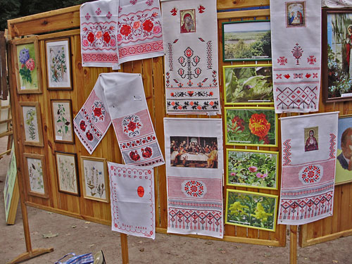В экспозиции фестиваля представлены изделия декоративно-прикладного творчества и народных ремесел. Здесь можно увидеть: керамику, роспись, художественную ковку и другие изделия народных мастеров. Черниговские художники представили свои картины.