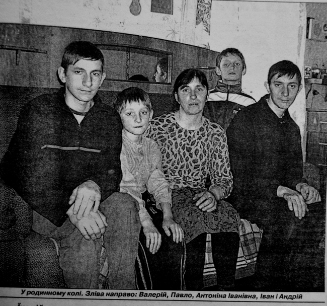 Їх, дійсно, семеро — яку казці. Найстарший — Андрій. Йому 20. Потім Олександр, Володимир, Валерій, Іван, Павло і Петро. „Це Петька Петрович”, — усміхається мати, Антоніна Воробей, лагідно дивлячись на хлопчика років чотирьох, який грається у пісочниці біля хати. І не просто грається, а щось майструє, вигадує — із старої каструлі зробив „колодязя”, з якого черпає воду „відерцем” із звичайного пластикового стаканчика. А поруч — викладений із дощок місточок-доріжка, що веде до “колодязя”. Трудівник, що й казати. Підросте — буде мамі опора. Як і решта синочків. З тих пір, як не стало їхнього батька, одна надія — на хлопців...