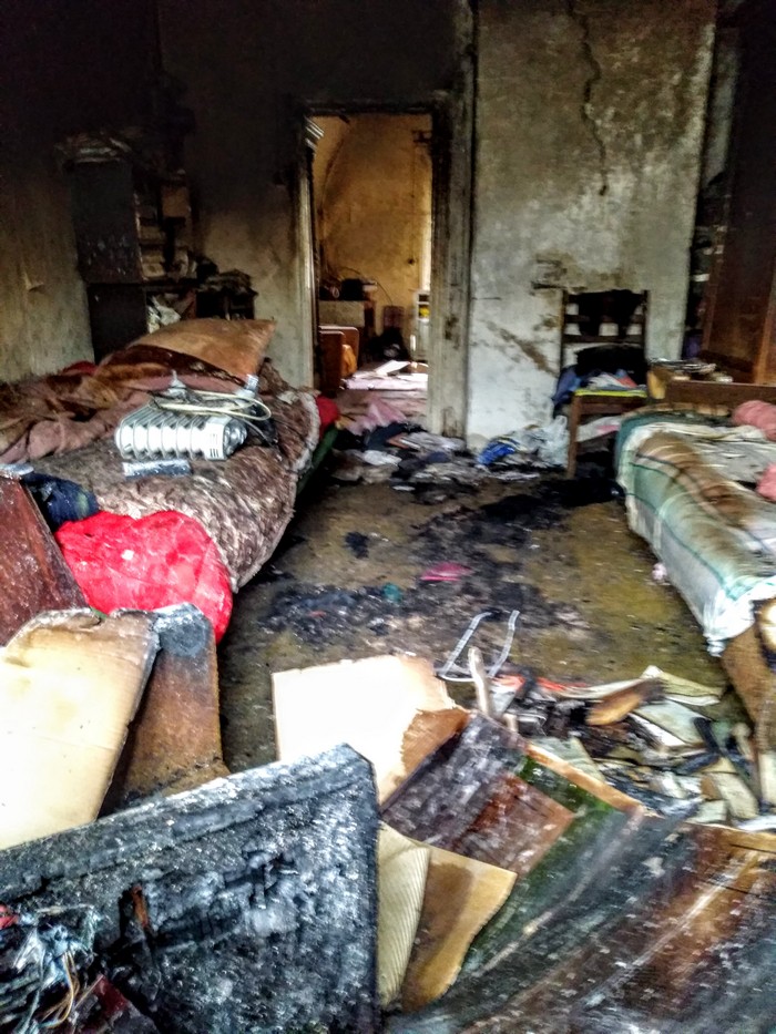 В этом большом доме на три квартиры по улице Гончая, 55, в 4 часа 40 минут 20 февраля произошел пожар. Внутри горевшей половины, в которой жил сын владельцев, разбросаны частично сгоревшие вещи. Департамент по делам гражданской защиты и оборонной работы ОГА на своем сайте сообщает, что причина пожара и ущерб устанавливаются.