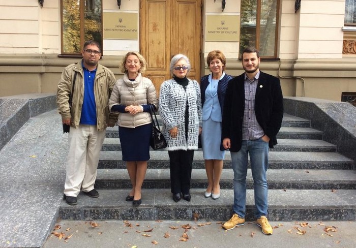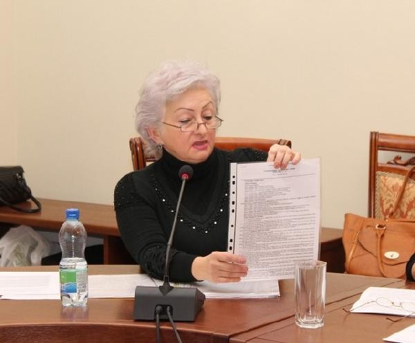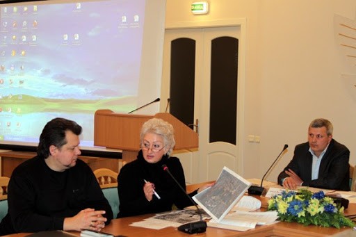 На фото Наталия Проскурина в черно-белой блузке справа рядом с Тамарой Петровой, во время приезда в Чернигов министра экологии в 2015-м году