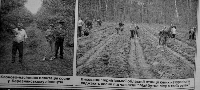 — За 2005 рік підпрйємство досягло позитивних результатів, — розповідає директор лісгоспу Олександр Обабко. — Виконані основні показники з лісовідновлення і захисного лісорозведення. Лісові культури посаджені на площі 205,4 га при плані 185 га, виконаний план створення захисних насаджень на площі 6,3 га. Заготовлено 2906 кг лісового насіння основних порід (при плані 700 кг). У посівному відділенні розсадника на площ» 1.77гаї вирощено 2 мли. 782 тис штук стандартних сіянців виг рати на ведення господарства склали за 2005 рік в Мпи 379 тис. гри, У цьому році ДГ1 „Чернігівське лісове гос. подарство" планує провести відтворення лісів на площі 185 га, захисних насаджень — на площі 5 га Вже ство-рено 146 га лісових культур (79 % річного плану) д^, забезпечення робіт високоякісним насіннєвим матеоі" алом на підприємстві планується створення розсадника на площі 1,5 га в кількості 2,5 мли штук стандартну сіянців. Селекційного садматеріалу планується виростити 530 тис. штук. Заготовлено 230 кг насіння сосни Створена плантація новорічних ялинок на площі і га Нинішня весна запам'яталась проведенням загальнодержавної акції "Майбутнє лісу у твоїх руках", яка пройшла 15 квітня і в якій брали участь усі підрозділи лісгоспу. На площі 12,6 га з'явилися нові ліси До робіт було залучено 379 чоловік. Залучались школярі, вчителі загальноосвітніх шкіл, вихованці станції юних натуралістів, представники громадськості та влади