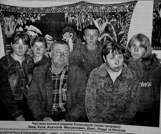 Після смерті Валентини Яківни відповідні служби порушили питання про те, хто ж тепер виховуватиме 11 дітей. Анатолій Михайлович, який частенько випивав, багато в кого викликав недовіру. Найстарша дочка Валентини — Тамара — на той час вже мала свою сім'ю і жила окремо. Другій доньці жінки від першого шлюбу, Наталії, було усього 17. Одне слово, існувала ймовірність того, що діти опиняться в інтернаті. І тоді Колесники вирішили будь-що відстояти своє право бути разом, в одній сім'ї. Старші дівчата склали листа, мовляв, зможемо виростити менших дітей самі, заручилися підтримкою односельців і надіслали свій „крик душі” у всі можливі інстанції. Анатолій же Михайлович пообіцяв виправитися і виховувати дітей з усією відповідальністю, і дітей залишили з батьком.