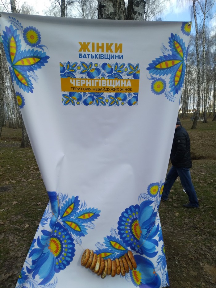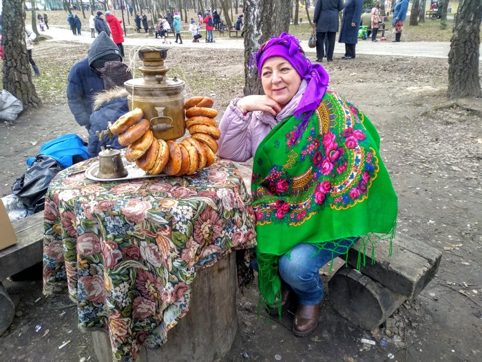 Погодка в субботу 29 февраля была как на заказ для Масленицы, яркое солнце веселило все вокруг. И то правда - “Прощай, зима, привет, весна”. В парке “Березовый гай” среди отдыхающих людей, одетых в зимние одежды, яркими пятнами высвечивались украинские красочные платки, по которым можно было определить принадлежность женщины к общественной организации “Женщины Батькивщины”. Наличие какого- либо элемента украинской одежды было для них главным условием для участия в празднике.