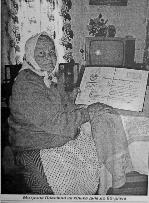 Про ті часи Мотрона Павлівна згадує з ностальгією. Каже, як не важко було, а всі в поле виходили веселі, щасливі. Пісні співали — аж льон тремтів. Так і пропрацювала жінка ланковою аж до 1981 року. І пішла на заслужений відпочинок. Попервах не давала спокою думка, що люди працюють, а вона в цей час сидить дома. Та з часом звикла. Тішила онуків, доглядала паралізовану свекруху, ще й їздила велосипедом до хворої сестри у сусіднє село Підгірне.