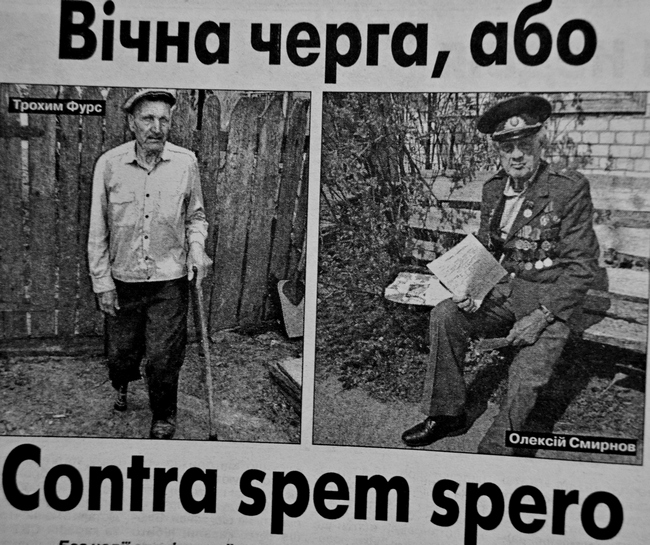 Отож доля звела Трохима Фурса та Олексія Смирнова у черзі за машинами, якими керувати мають право лише члени їх сімей. Та, схоже, це буде Contra spem spero, тобто сподіванням без надії, бо в Головному управлінні праці та соціального захисту населення на обліку для забезпечення спецавто-транспортом станом на 1 квітня нинішнього року перебувало 5409 інвалідів, з. них — 1687 інвалідів Великої Вітчизняної війни. Лише у тій черзі, де Фуре та Смирнов, 1336 інвалідів. Інвалідів багато, а автомобілів мало. Минулого року їх надійшло в область лише 161,
