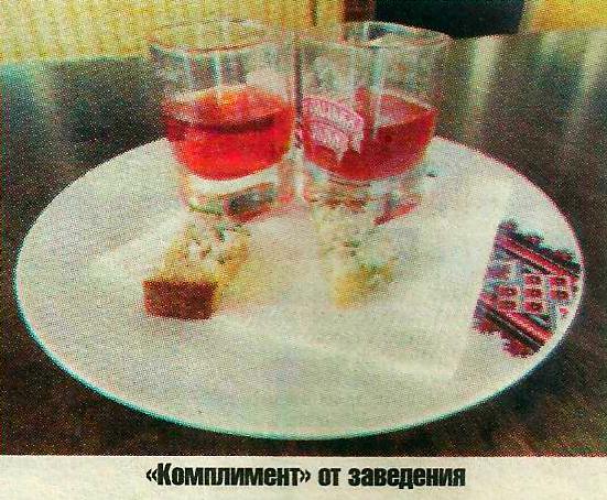 — Может, вас любят за ваши «комплименты»? (в «Українському підпіллі» дают выпить и закусить бесплатно — «комплимент» в виде 25 грамм настойки и пары маленьких кусочков хлеба с салом).