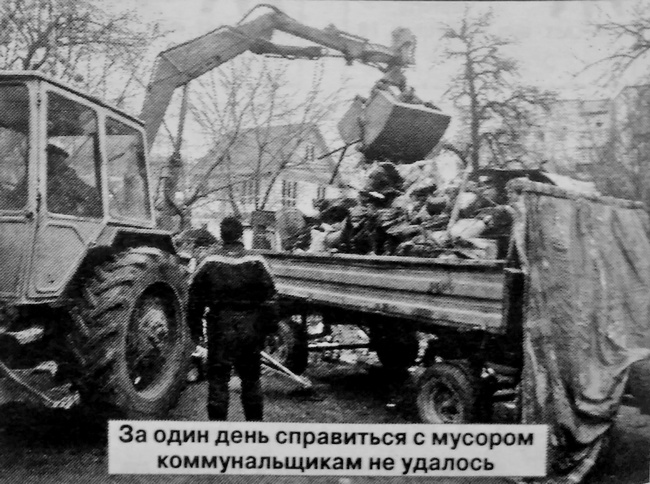 Продолжилась уборка во вторник, 3 марта. Несмотря на целый день работы, во дворе 9-го оставалось еще немало мусора — приблизительно на шесть тракторов.