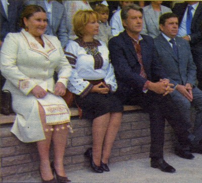 Председатель областного совета Наталья Романова, жена президента Екатерина Ющенко, президент Виктор Ющенко, глава облгосадминистрации Владимир Хоменко