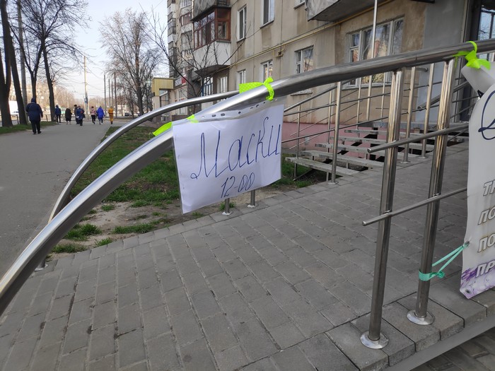 Глядя на такую ситуацию местные рукодельницы решили выручить горожан и себе какую-то копейку заработать. Соцсети и группы по интересам пестрят объявлениями о пошиве защитных масок, причем по доступной цене – от 10-12 гривен. Встретили мы такое объявление и на крыльце «Интерекс», которые торгуют постельным бельем, полотенцами, а также занимаются индивидуальным пошивом и изготовлением жалюзи и штор.