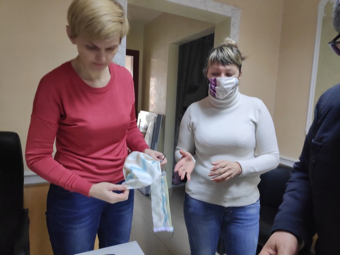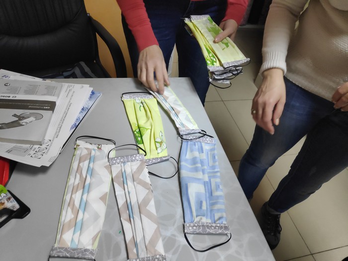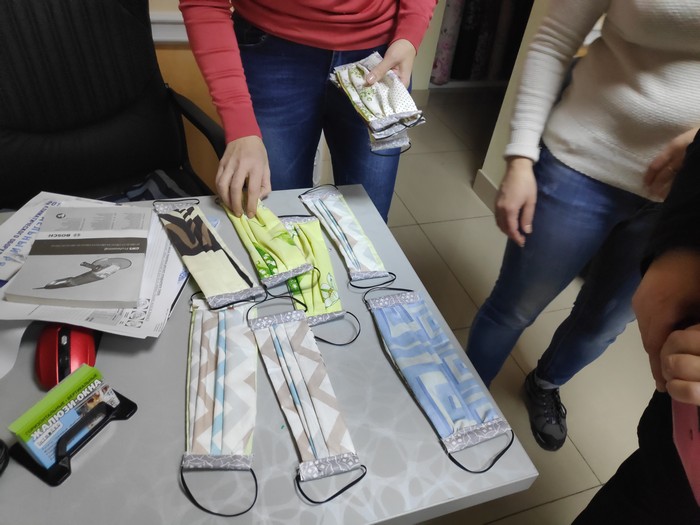 В магазине, когда туда зашел наш корреспондент одна из сотрудников отшивала маски на швейной машинке. По нашей просьбе нам вынесли для демонстрации несколько экземпляров:
