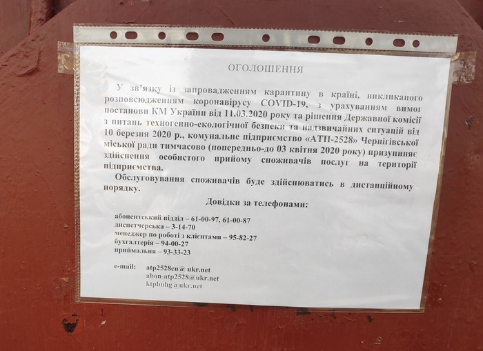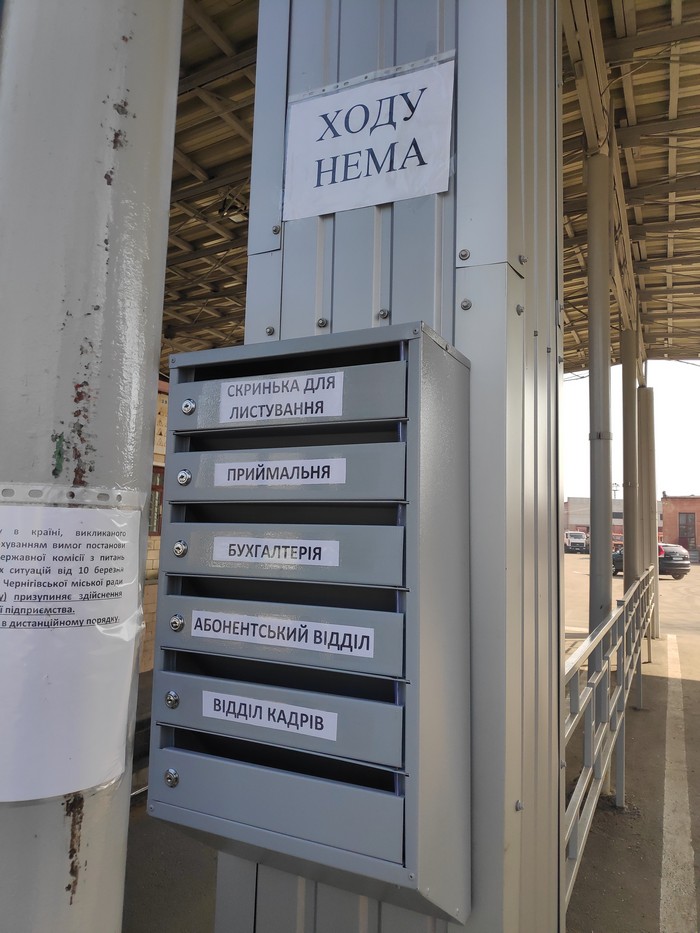 Строгий пропускной прием в дни карантина использует и КП АТП-2528. На входе вывесили почтовые ящики, в которые посетители, в зависимости от отдела могут передавать корреспонденцию в контору. Не работает и столовая, которая находится в помещении коммунального предприятия.