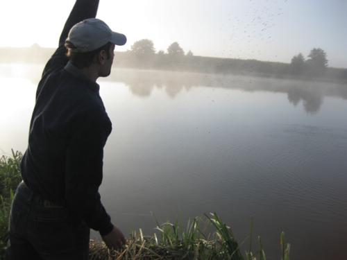 Озеро встречает нас росой и туманом
