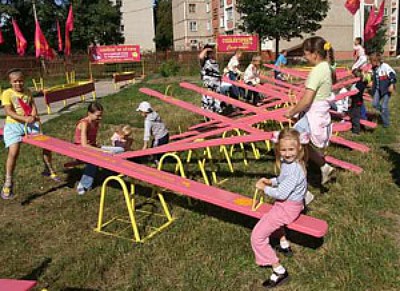 Для тих, хто ніколи не був у цьому мікрорайоні, зразу скажу: він — не лише колишнє селище з потужним робітничим потенціалом, а й напрочуд зелений район. Отож, «прошерстивши» палісадник, ім’я якому Шерстянка, були визначені переможці конкурсу «Зелений балкон» і «Зелена клумба». А тим часом щаслива дітлашня «визначала на витримку» привезені депутатами—соціалістами гойдалки, пісочниці і будиночки. Їх планували розподілити між 15 подвір’ями, що й зробили того вечора.