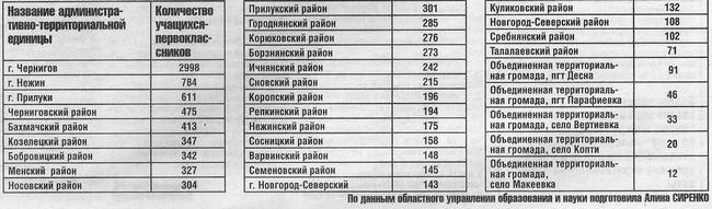В Чернигове и области в 2016 2017 учебномигоду первоклассников — 9967. Больше всего е Чернигове. В райцентрах — намного меньше.