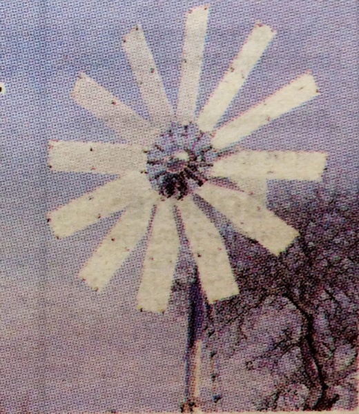 Вместе осматриваем детище Игоря Витальевича. Повезло, что именно в это время интенсивно дует ветер — десять лопастей самодельного ветряка быстро крутятся, немного вращаясь из стороны в сторону.