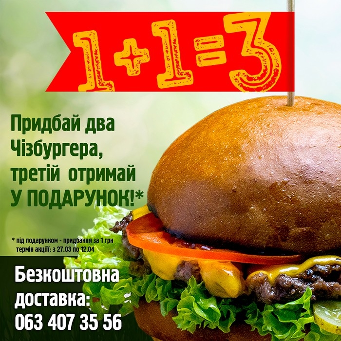 До 12 квітня діє акція на Чізбургери: купуй два – третій отримай в подарунок*