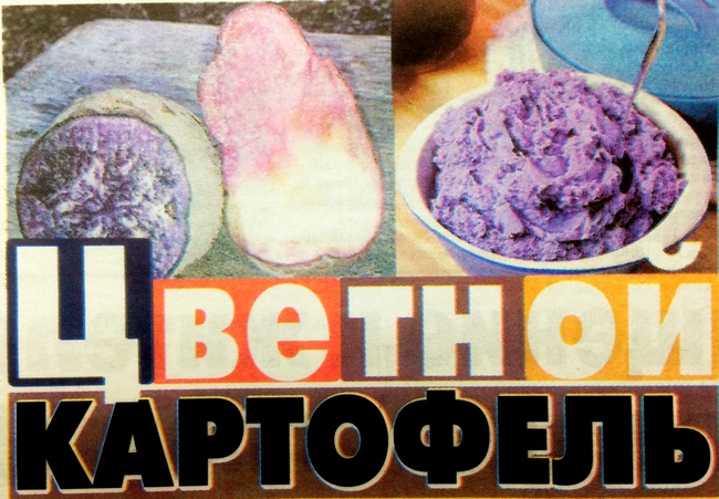 В ногу со временем работают и украинские научные работники. Селекционеры Института картофелеводства Национальной академии аграрных наук Украины создали цветные внутри и снаружи сорта картофеля — «солоха» и «хортица». Оба выращивает у себя дома Андрей Острожный из Батурина Бахмачского района.