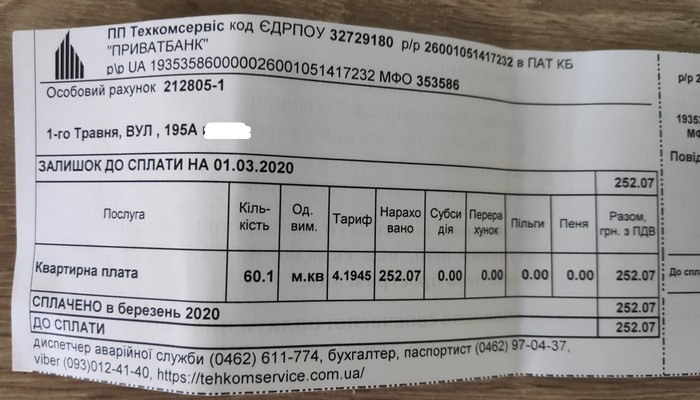 Тут следует отметить, что тариф на квартплату в микрорайоне на 1 Мая, который включает в себя комплекс из 7 домов, составляет 4.19 грн. за 1 кв. метр. Если учесть, что средняя площадь квартиры около 50 квадратных метров и платят все, а в среднем в каждом доме 100 таких квартир, то ежемесячная сумма оплаты ЖЭКу составит чуть меньше 150 000 в месяц. При этом каждый квртировладелец в среднем платит 2 514 гривен в год. Например, автор этой статьи, который живет в единственном из 7-ми домов, где было создано ОСМД платит в год квартплату в размере 3024 грн.