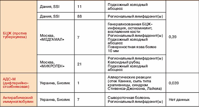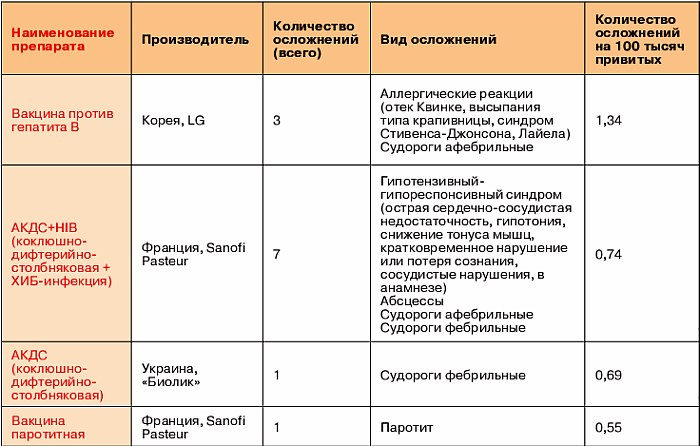 Еще для вас мы обобщили данные “Центра иммунобиологических препаратов” о том, какие вакцины вызывали осложнения в 2008 году. Чем выше цифра на 100 тысяч привитых – тем хуже.