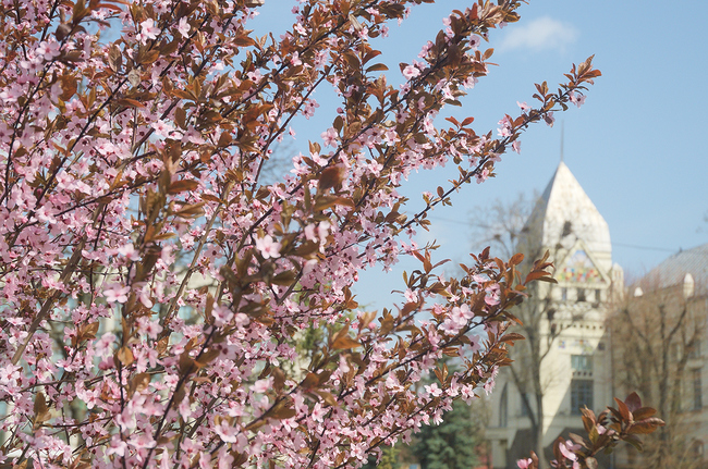 Во дворах уже начинают цвести плодовые деревья, в парках буйно цветет форзиция и белая магнолия. На клумбах красуются нарциссы и тюльпаны, а первые цветы весны крокусы, уже начинают отцветать.