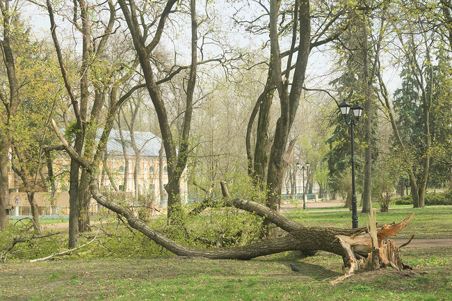 Ночью 16 апреля было ветрено, и в парке на Валу свалило дерево. Здесь делали в прошлом году санитарную расчистку, но защитники природы стояли на страже и боролись за каждое дерево. Хорошо, что никто не пострадал, а дерево оказалось трухлявым.