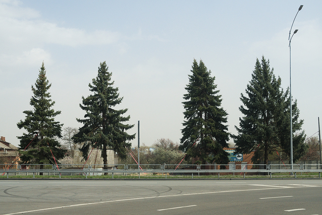 Ели, которые пересадили на въезде в город со стороны Киева, уже хорошо прижились.