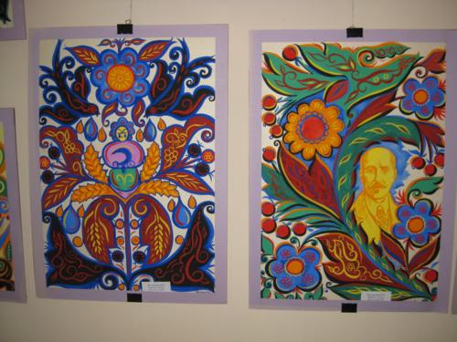 На выставке также представлены работы Георгия Якутовича – гравюры к повести «Фата Моргана», «Тени забытых предков»; работы Михаила Жука – «Молодой Михаил Коцюбинский слушает лирника» и другие.
