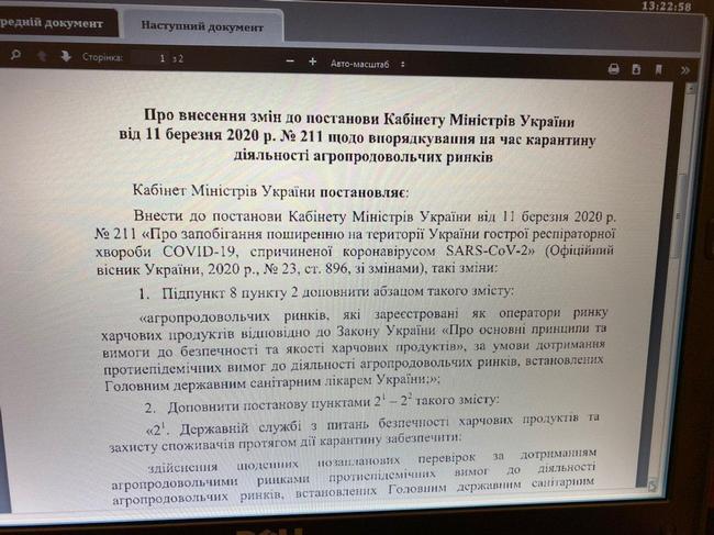 "Основным условием работы продовольственных рынков является решение соответствующего территориального органа Госпродпотребслужбы о соблюдении противоэпидемических требований", - заявил премьер-министр Денис Шмыгаль.
