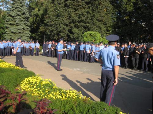 В пятницу 4-го сентября, в сквере имени Богдана Хмельницкого было проведено первое профикалктическое собрание, в котором приняли участие около 200 милиционеров из горотдела, патрульно-постовой службы, внутренних войск, «беркута».