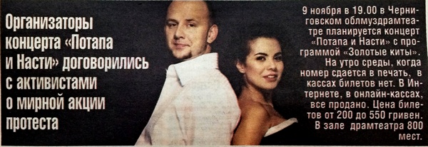 9 ноября в 19.00 в Черниговском облмуздрамтеатре планируется концерт «Потапа и Насти» с программой «Золотые киты».