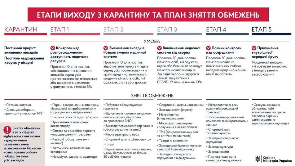 Нагадаємо, зі слів Прем’єр-міністра Дениса Шмигаля, Україна виходитиме з карантину в п’ять етапів.