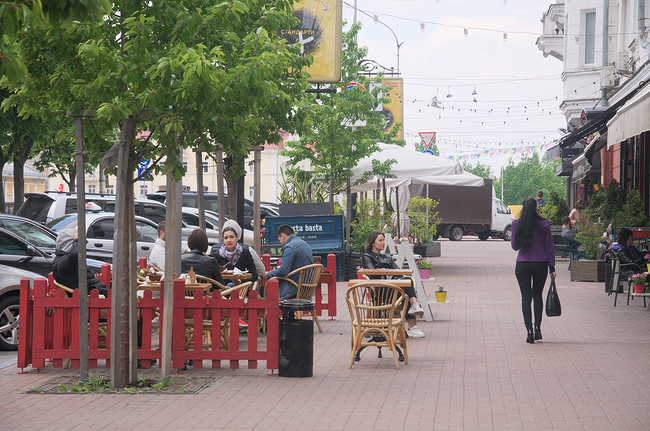 Полноценно летние площадки заработали лишь на любимом участке жителей и гостей города, от Красной площади до Вала. Здесь хотя и немноголюдно, но посетители есть.