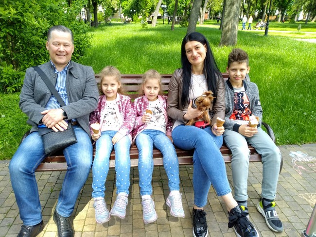 На скамейке возле памятника Богдану Хмельницкому расположилась большая, нарядно одетая семья. Глава семейства Сергей в свое время закончил расположенную рядом школу №3, в этом районе живут его родители, поэтому этот парк - его любимое место отдыха.