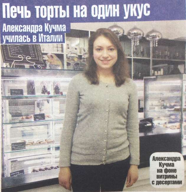 — После окончания философского факультета Киево-Могилянской академии решила продолжить учебу в Болонском университете в Италии, изучать семиотику (наука, исследующая свойства знаков и знаковых систем). Стала осваивать итальянский. А потом все круто поменялось. Я, конечно, философию люблю, но в моем возрасте хотелось заниматься чем-то более активным. Решила свои идеи воплощать в десерты. Еще с детства любила готовить. Радует, когда то, чем ты занимаешься, приносит людям удовольствие, — говорит хозяйка кафе. — Так я поступила в школу «Альма», которая находится недалеко от Пармы в городке Колорно. После окончания выдают не сертификат, а солидный диплом. Это было нелегко. Я — единственная иностранка на курсе. Обучение недешевое. Основатель школы — известный кулинар Гвальциеро Маркез и.