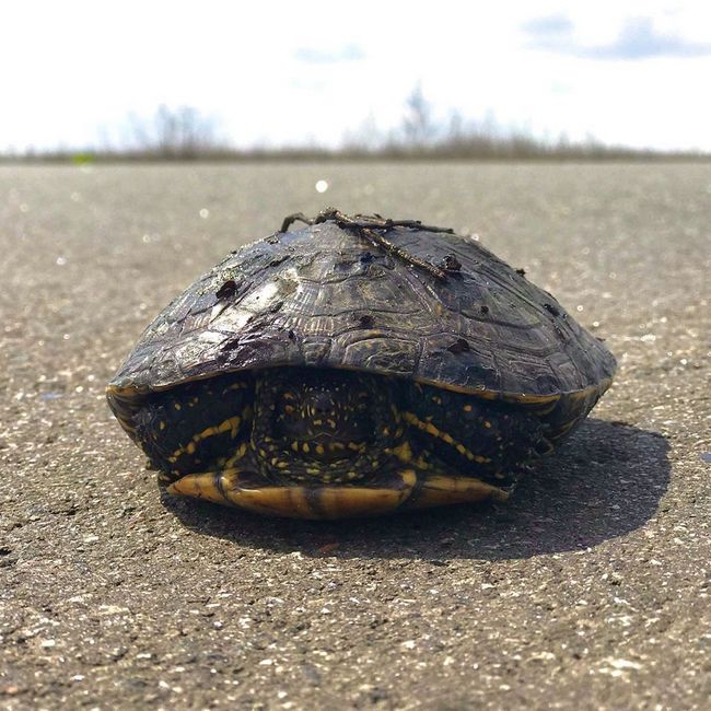 — В саду моего дяди бобры все деревья погрызли, молоденькие яблоньки и груши повалили, — рассказывает 51-летняя Ольга Парубец. — В последние годы пересыхают водоемы, и бобры, чтобы выжить, перебираются ближе к людям. А еще у нас в Лосиновке стали водиться черепахи. В этом я убедилась в начале мая, когда возвращалась домой с работы и увидела, как односельчанка — учительница Анжела Ткач — что-то рассматривает на обочине проезжей части. Я тоже остановилась — в траве была миниатюрная черепаха размером с одногривенную монету старого образца. Ее панцирь, голова и лапки были черные. Мы сфотографировали и отпустили животное на волю. Черепаха поползла в сторону Фрунзовского пруда. Думаю, там их много. Я слышала, что односельчане видели черепах, но немного больших по размерам.