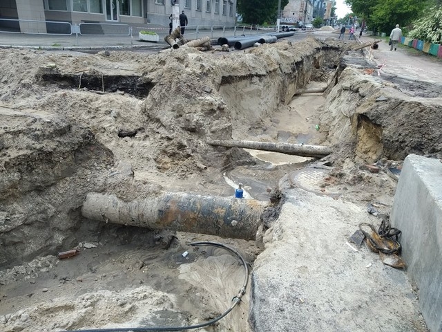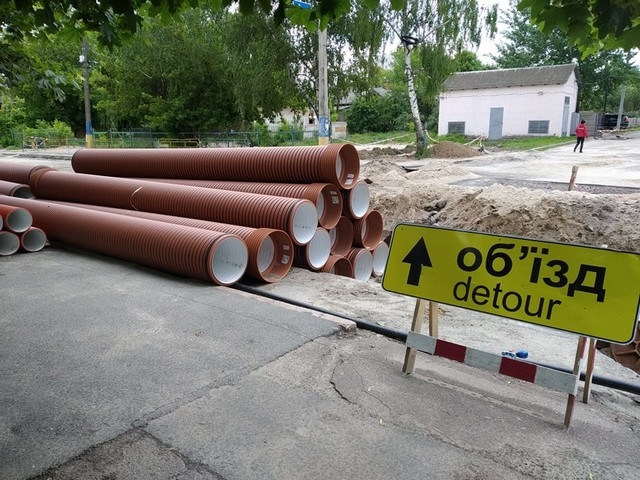 З 24 березня вулиця Київська цілодобово перекрита для реконструкції водопроводу діаметром 500 мм. В той же час, паралельно водопроводу прокладено і каналізаційний колектор, який також потребує заміни.