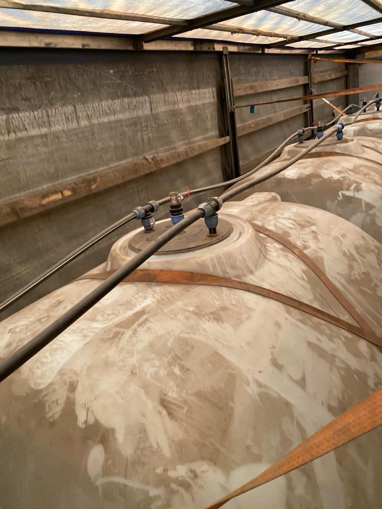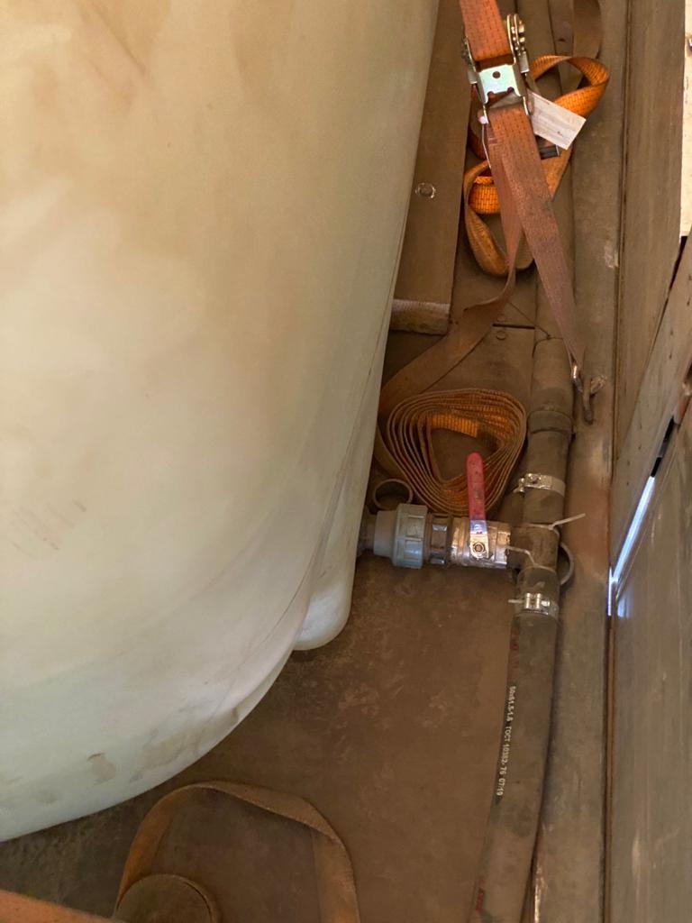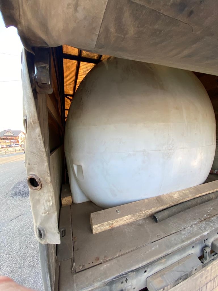 Під час обшуку у вантажному відсіку даного автомобіля виявлено 5 пластикових ємностей об’ємом по 6000 літрів кожна, заповнених прозорою рідиною з характерним запахом спирту, під‘єднаних до спеціальної системи, що дозволяє в разі зупинки автомобіля співробітниками правоохоронних органів, перетворювати спирт на склоомивач.