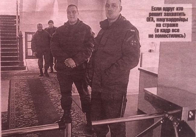 15 марта в ОГА, как войти через главные двери, за турникетом — семь охранников. Нацгвардейцы. Обычно их двое-трое.