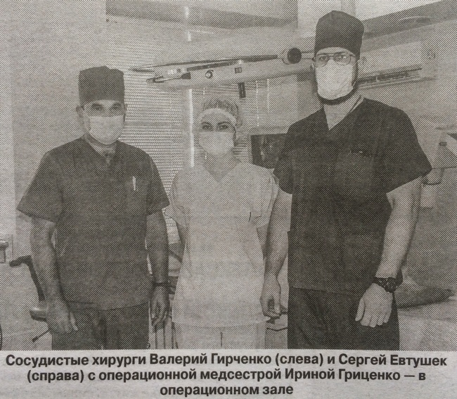 — У больного была рана нижней трети предплечья с повреждениями мышц, сухожилий, локтевой артерии и нервов. Ситуацию осложняло сильное кровотечение после снятия жгута. А нам надо было как можно быстрее восстановить проходимость — сшивать поврежденные сосуды и нервы вручную. Сначала работали мы с коллегой Сергеем сшивали концы сосудов, — рассказывает сосудистый хирург Валерий Гирченко. — Орудиями «труда» у нас были несколько атравматических игл (их толщина такая, как волосинка) с пропиленовыми нитями (они рассасываются в организме). Мы справились за два часа. Далее за дело взялся врач-нейрохирург Александр Садовский.